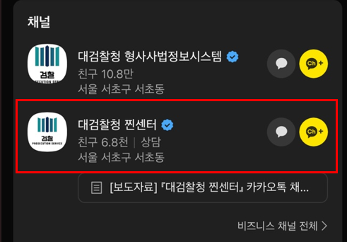 📱 카카오톡에서 ‘대검찰청 찐센터’ 채널 추가